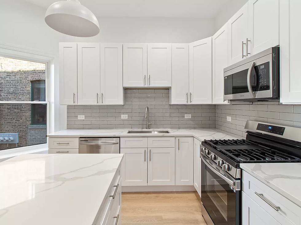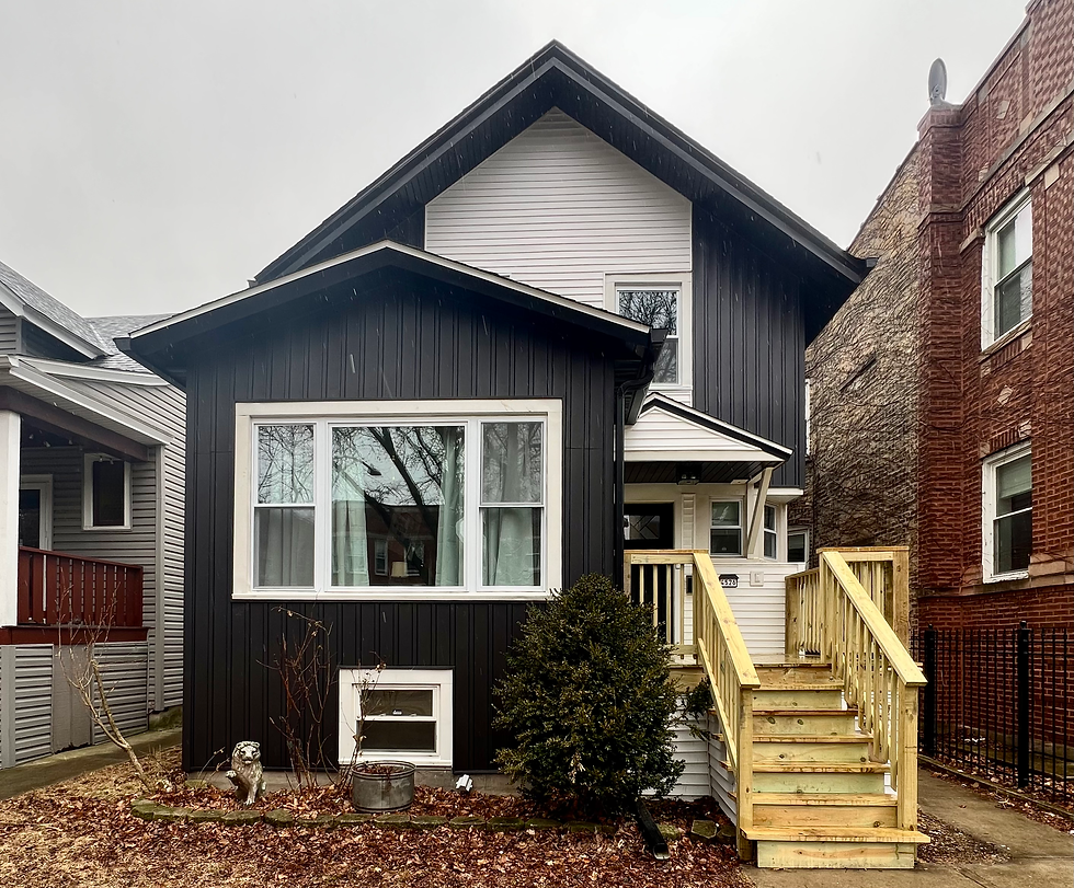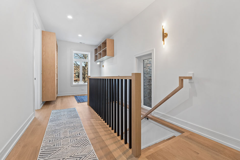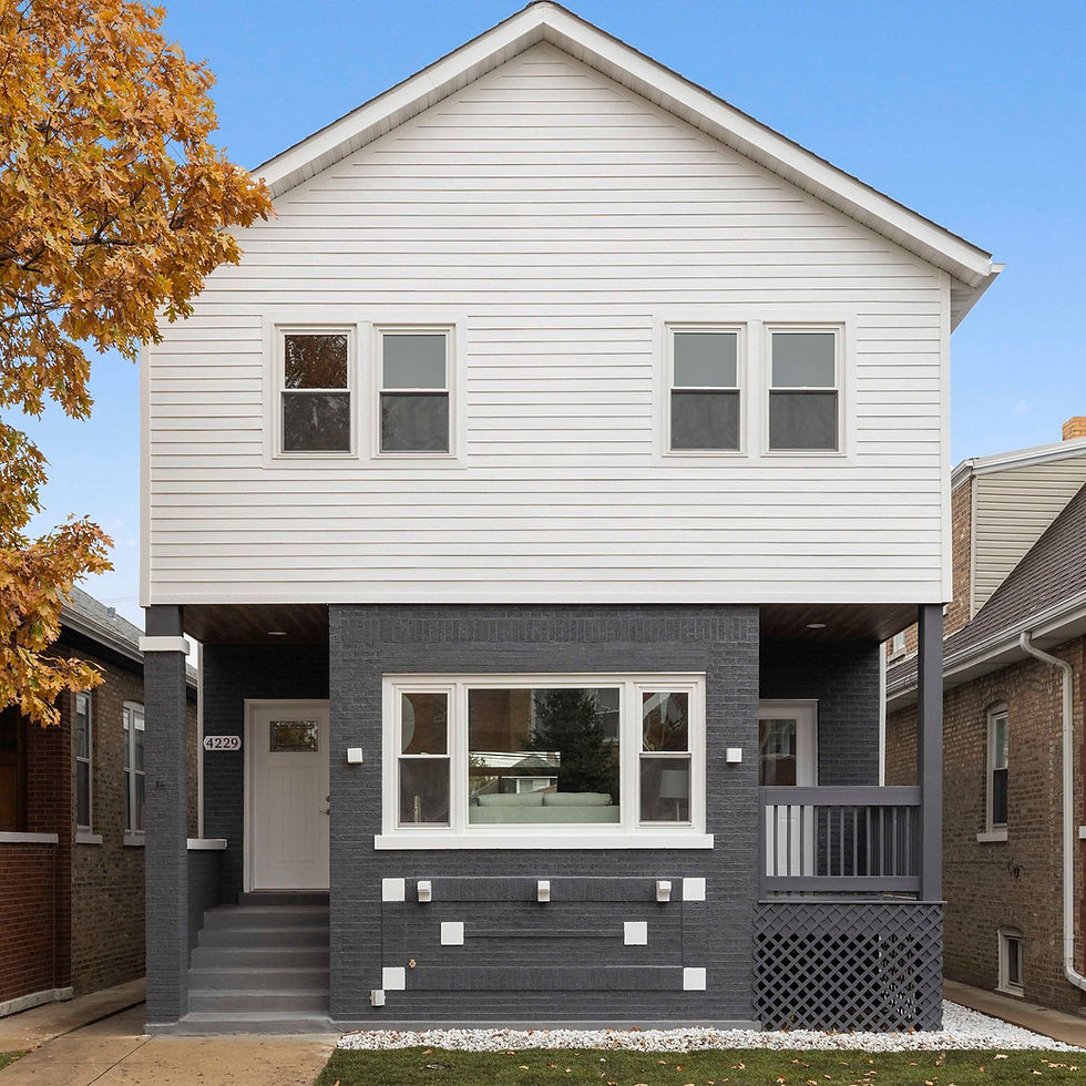 Full rehab of a spacious Albany Park home. We completely gutted the first level, opening up the kitchen and dining area by removing a dividing wall to create a seamless, open-concept layout. We also added a brand new powder room. Upstairs, the primary bathroom got a full renovation, and we upgraded the exterior siding as well as the front and back porches,